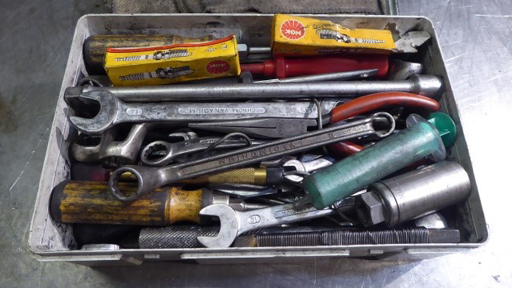 Da müssen wir etwas ausholen: Werkzeug ist etwas „Intimes“, oder wird es, wenn man längere Zeit schraubt, und etwas taktiles, weil man ein Gefühl mit den Händen über das Werkzeug zum Werkstück (= Heinkel) aufbaut. Deshalb möchten wir nur eingeschränkt Empfehlungen geben. Ich (H) habe meinen Werkzeugkasten in den 80iger Jahren aus vorhandenem Werkzeug zusammengestellt und danach nie wieder verändert oder ergänzt. Aus unserer Sicht sollte das jeder selbst individuell machen. Zuerst muss man sich klar machen, was man unterwegs reparieren kann und will, hier als Beispiel bezogen auf den Motor: Nur Kerze raus, oder Ventile einstellen, oder Motor raus und Kohlen wechseln? Dies muss vorher klar sein, sonst macht eine Zusammenstellung wenig Sinn. Man kann „prüfen“, ob man das richtige Werkzeug zusammengestellt hat, indem man zu Hause die in Frage kommenden “Unterwegs-Reparaturen“ durchspielt und sieht, was fehlt.
