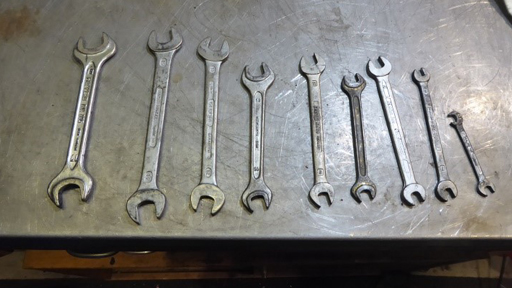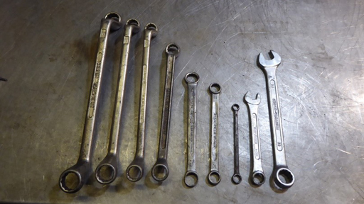- je 1 Nuß 1/4 Zoll: 5/6/7/8/9/10/11/12/13/14 (Anmerkung: Ich (H) persönlich arbeite gerne mit kleinem Werkzeug, d.h. 1/4 Zoll, deshalb sind die Größen 10 – 14 doppelt) 1 Adapter-Nuß 3/8 Zoll auf ¼ Zoll und ½ Zoll auf 3/8 Zoll